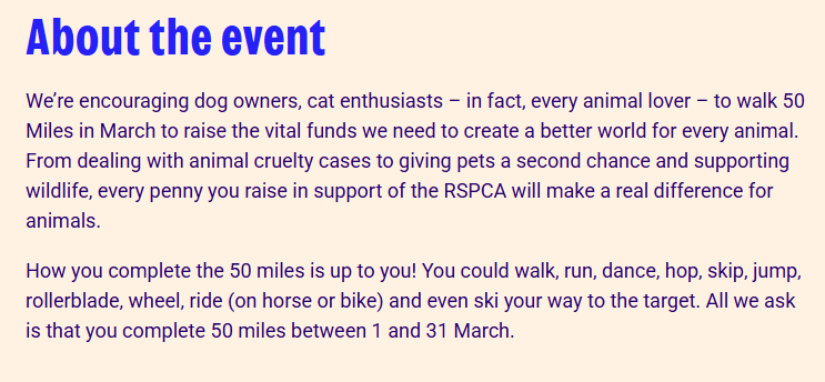 I signed myself up for the 50 miles in March to raise funds for the RSPCA.